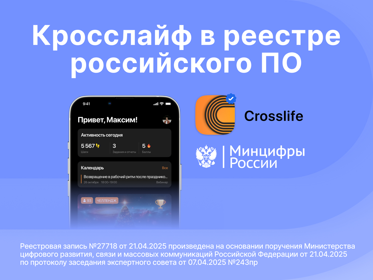 Теперь официально: цифровая платформа Кросслайф включена в Единый реестр отечественного программного обеспечения, который ведёт Минцифры России.